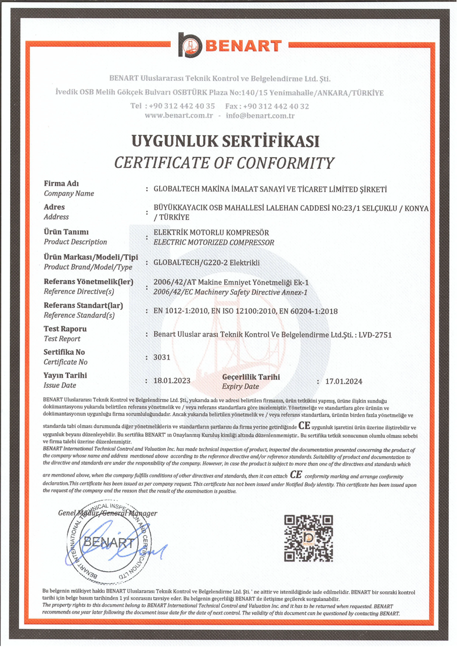 CE Uygunluk Sertifikası Dizel Modeller